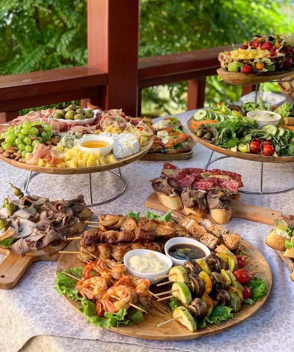 Все очень вкусно, все свежее, красивая сервировка, , доставка немного задержалась - почти вовремя. В выборе по количеству гостей помогли консультанты - спасибо. Рекомендую всем данный кейтеринг.